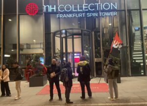 Am 10.3.2026 fand in Frankfurt vor 2 Hotels der NH Kette eine Aktion der FAU Frankfurt statt.